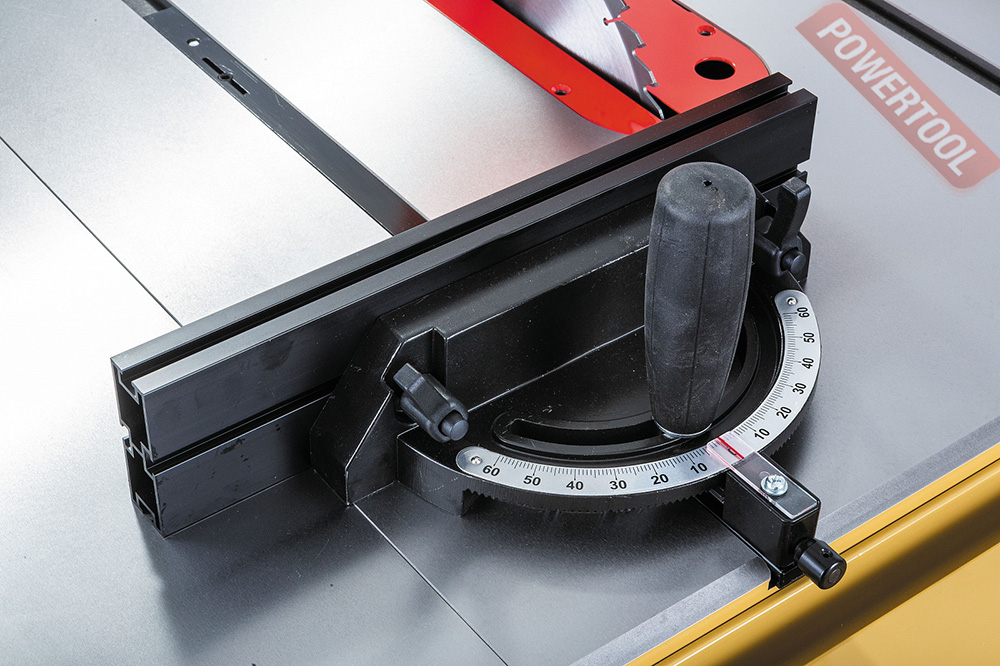 В стандартную комплектацию PM1000 входят два расширителя стола, выполненные из чугунного литья, а также жесткий и точный в работе параллельный упор с эксцентриковым зажимом. Упор перемещают вдоль специальной направляющей, что позволяет распиливать заготовки значительной ширины, даже большей чем размер стола с расширителями. Для выполнения резов под углом прилагается скользящий упор, который монтируют в один из двух Т-образных пазов.