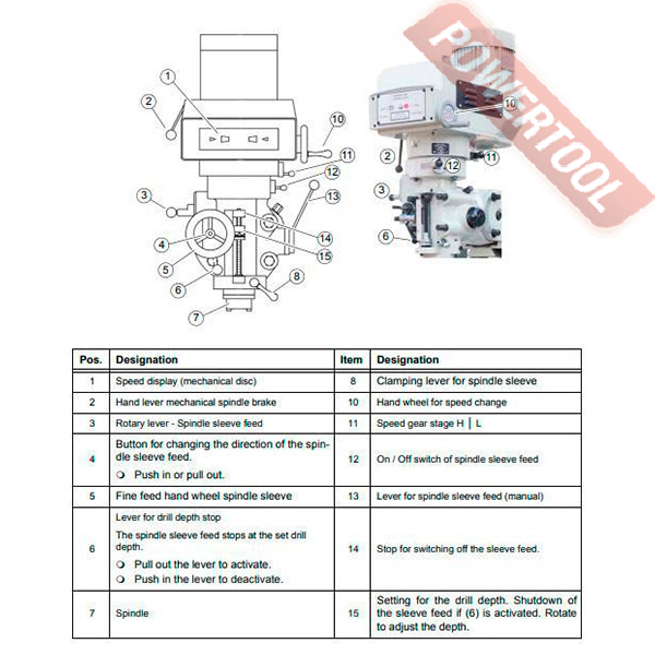 • Поворотная на +/-45 градусов сверлильно-фрезерная головка.