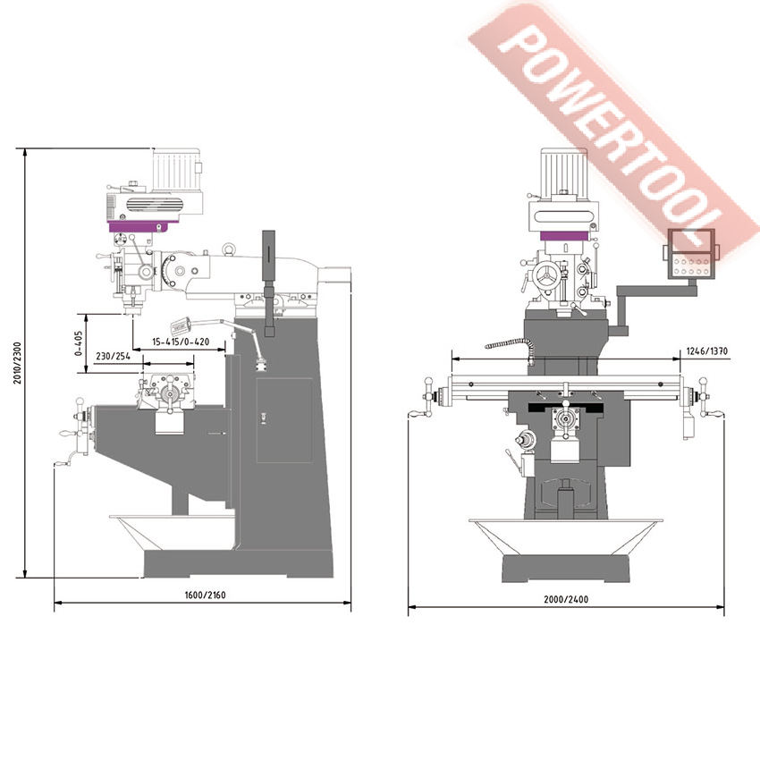 Фрезерный станок по металлу универсальный, мощность 3000 Вт, 380 В, конус вертикального шпинделя ISO-40, max диаметр концевой фрезы 20 мм, max диаметр торцевой фрезы 76 мм, max диаметр сверления 24 мм, частота вращения вертикального шпинделя 60-4200 об/мин, 2 передачи, ход шпинделя 127 мм, наклон головки +/-90 градусов, поворот головки +/-45 градусов, автоподача пиноли 0,04/0,08/0,15 мм/об, шпиндель-колонна 420 мм, вертикальный шпиндель-стол 405 мм, размер стола ДхШ 254х1370 мм, ход стола по оси XхYхZ 820х410х400 мм, автоподача стола по оси XхYхZ, 3 Т-образных паза 16 мм, max нагрузка на стол 300 кг, габариты ДхШхВ 2160х2400х2300 мм, вес 1200 кг, в комплекте защитный экран, лампа местного освещения, набор инструментов, система СОЖ, УЦИ.