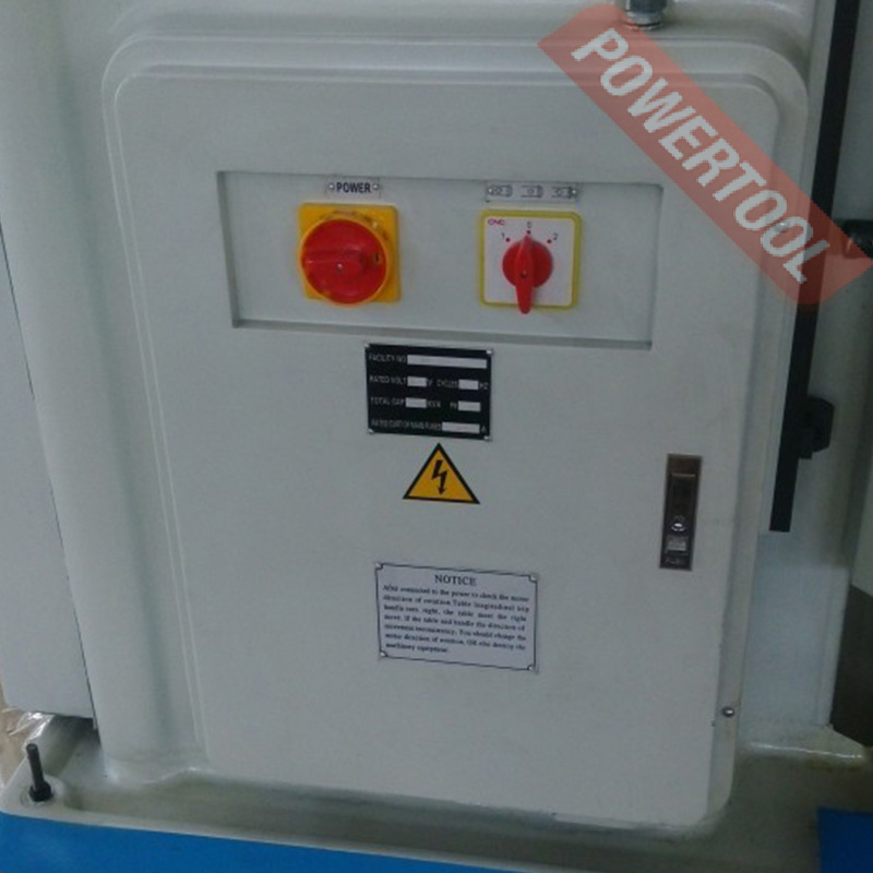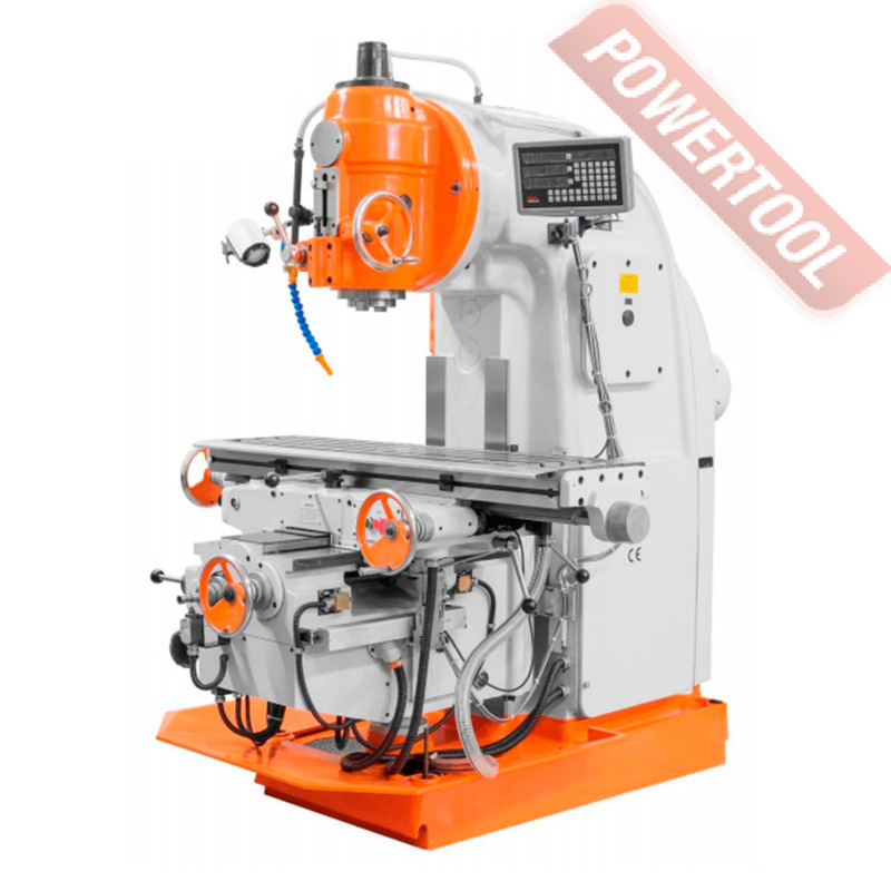 Фрезерный станок с УЦИ предназначен для обработки резанием при помощи осевого режущего инструмента, наружных и внутренних плоских и фасонных поверхностей, пазов, уступов, тел вращения, отверстий, резьбовых соединений, зубьев зубчатых колёс и т.п. Станок находит широкое применение в серийном производстве и в производстве единичных крупногабаритных, тяжёлых деталей, а также в ремонтных цехах. В данной модели установлено устройство цифрового измерения по трём осям, автоматическая вертикальная подача стола в трёх направлениях, рабочее освещение и система охлаждения СОЖ.