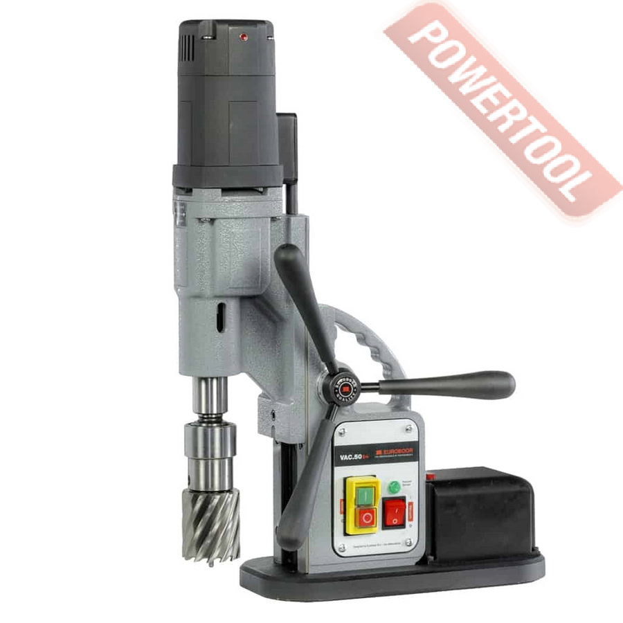 Вакуумный сверлильный станок EUROBOOR VAC.50S Plus - революционный станок для сверления специально разработан для горизонтального применения на немагнитных поверхностях. Он прилипает практически ко всем гладким поверхностям (таким как алюминий, нержавеющая сталь, пластик, композиты, латунь, бронза, цинк, свинец или даже медь) благодаря использованию уникальной вакуумной технологии. Мощный двигатель с редуктором с масляной смазкой обеспечивает энергоэффективное, плавное и быстрое сверление с максимальным диаметром сверла 50 мм.