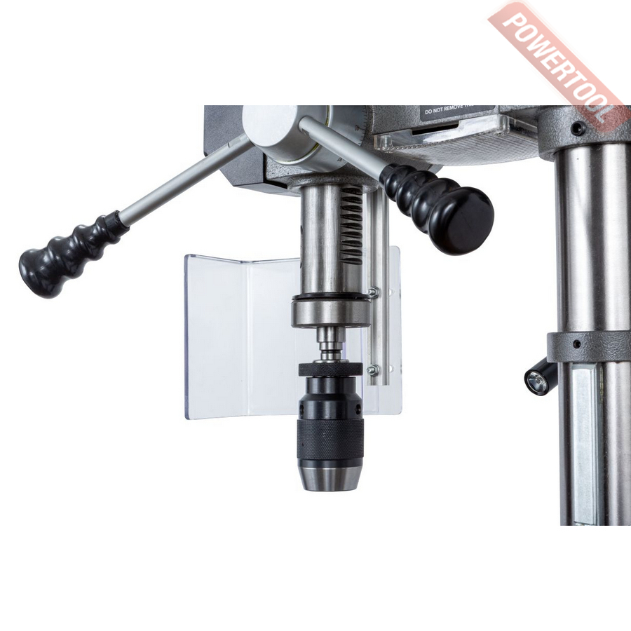 Стандартная комплектация включает в себя быстрозажимной сверлильный патрон 1-16 мм/В16, защитный экран, лампу местного освещения и инструкцию по эксплуатации.