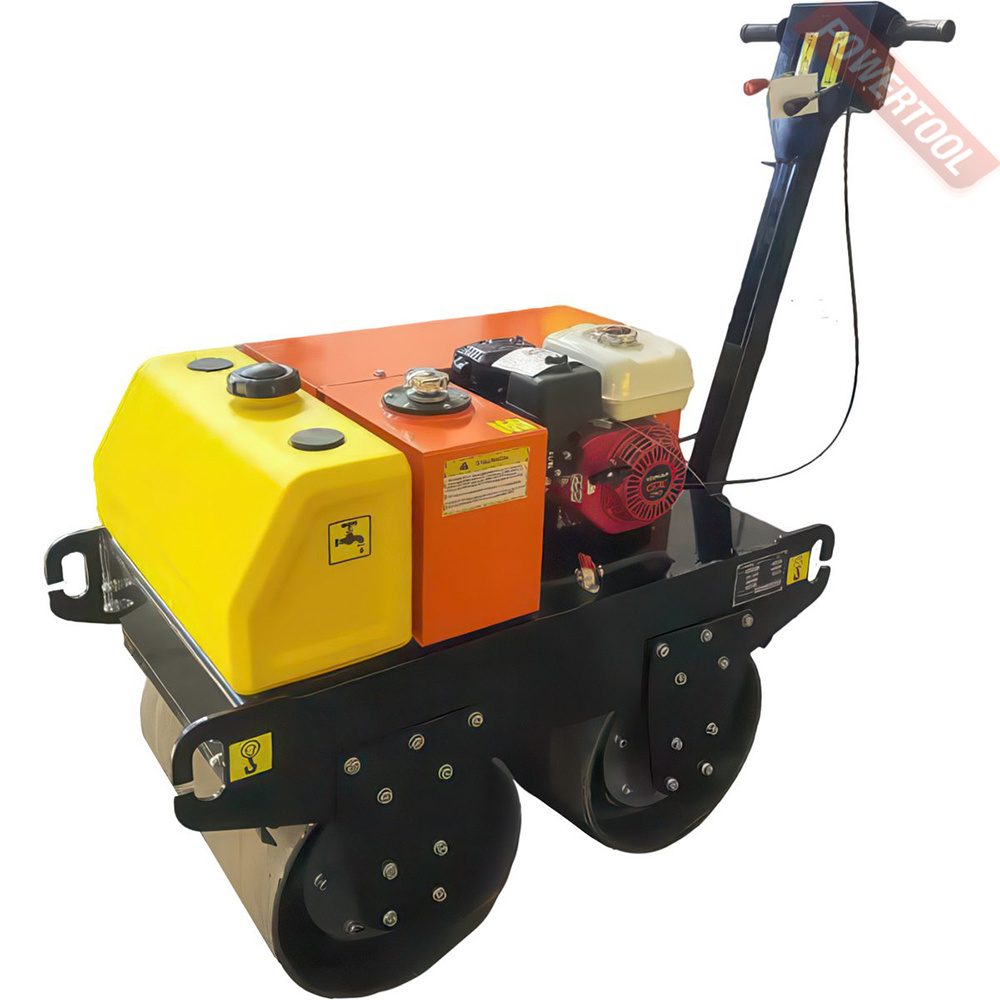 Виброкаток ручной двухвальцовый для асфальта и грунта, вес 485 кг, ширина вальцов 600 мм, усилие уплотнения 20 кН, скорость 0-4 км/ч, гидравлический привод, 4-тактный бензиновый двигатель Honda GX160 объемом 163 куб.см и мощностью 4,8 л.с., топливный бак 3,1 л, расход топлива 1,4 л/ч, емкость картера 0,6 л, бак для воды 16 л, складная рукоятка, габариты ДхШхВ 2450х780х1100 мм.