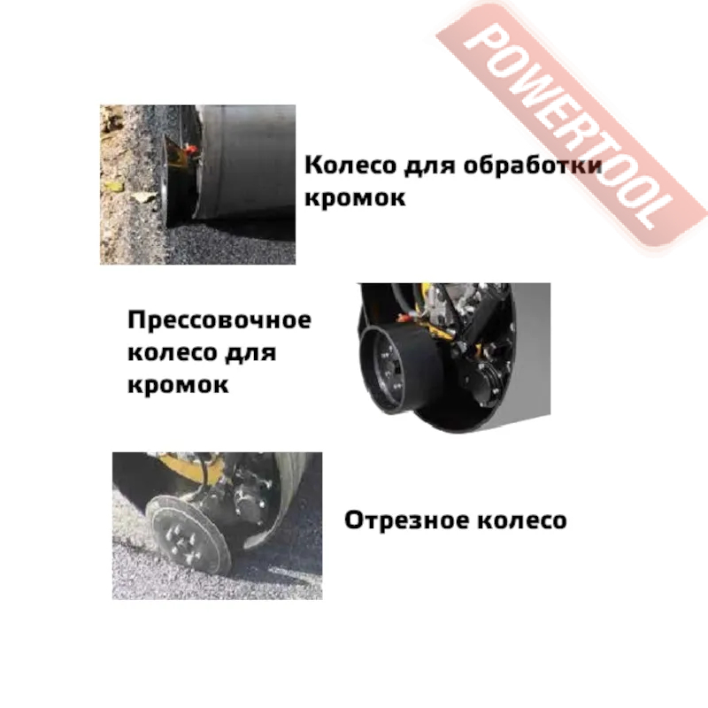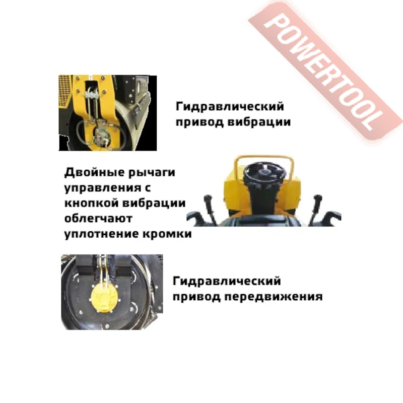 В данной модели вибрация предусмотрена только на ОДНОМ ВАЛЬЦЕ. Каток оснащен КРОМОЧНЫМ КОЛЕСОМ для обработки кромок. Имеет электрическую систему подачи воды под давлением, объемный пластиковый бак для воды, передние и задние фары.
