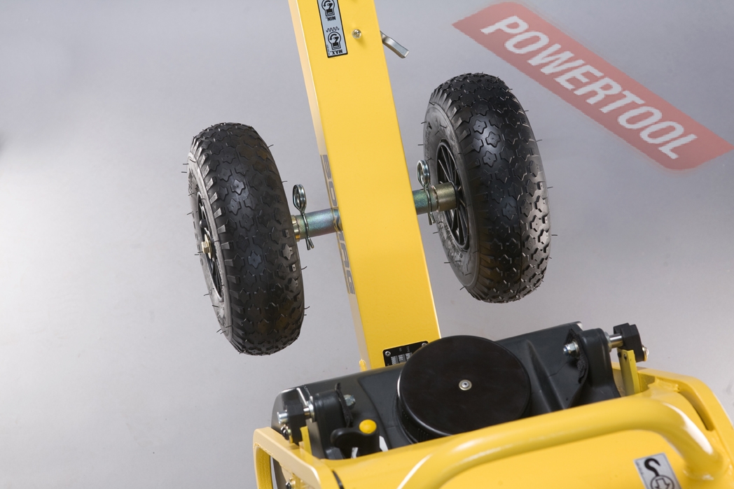 - Для транспортировки виброплиты можно опционально приобрети специальные транспортировочные колеса. Они интегрируются в плиту, легко убираются в специальное место и не мешают оператору в работе.