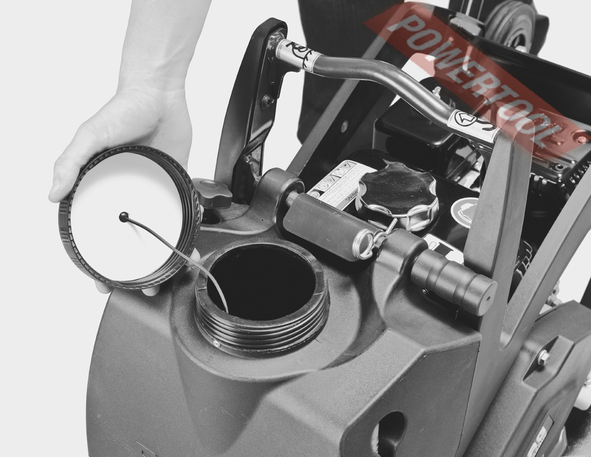 - Для работы по асфальту плита оснащена баком для воды с системой орошения. Бак пластиковый, быстросъемный, имеет большую вместимость и индикатор уровня воды. Оператор может точно регулировать расход воды.