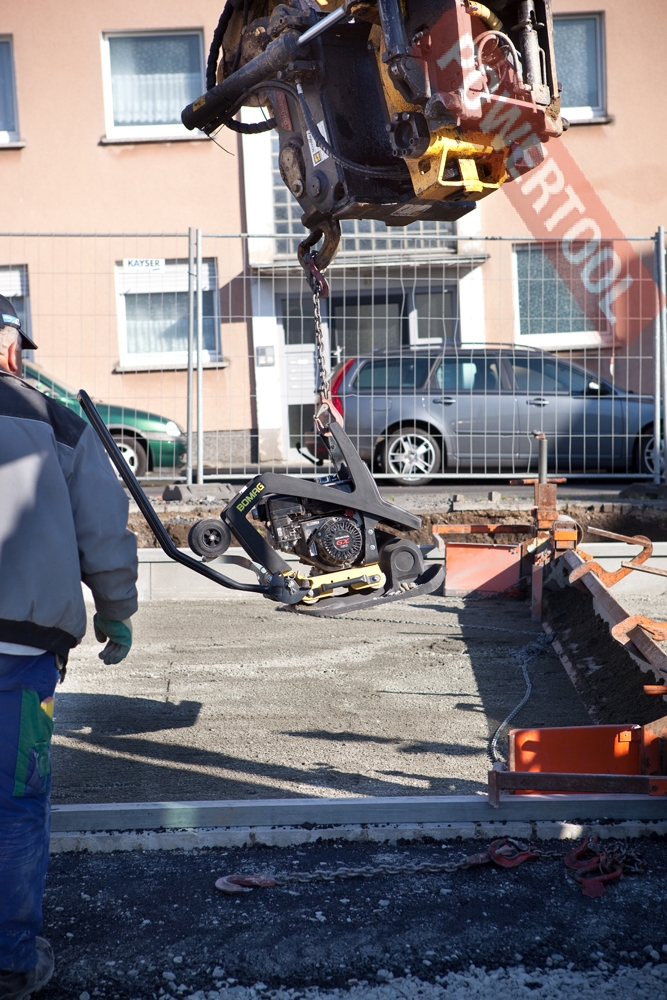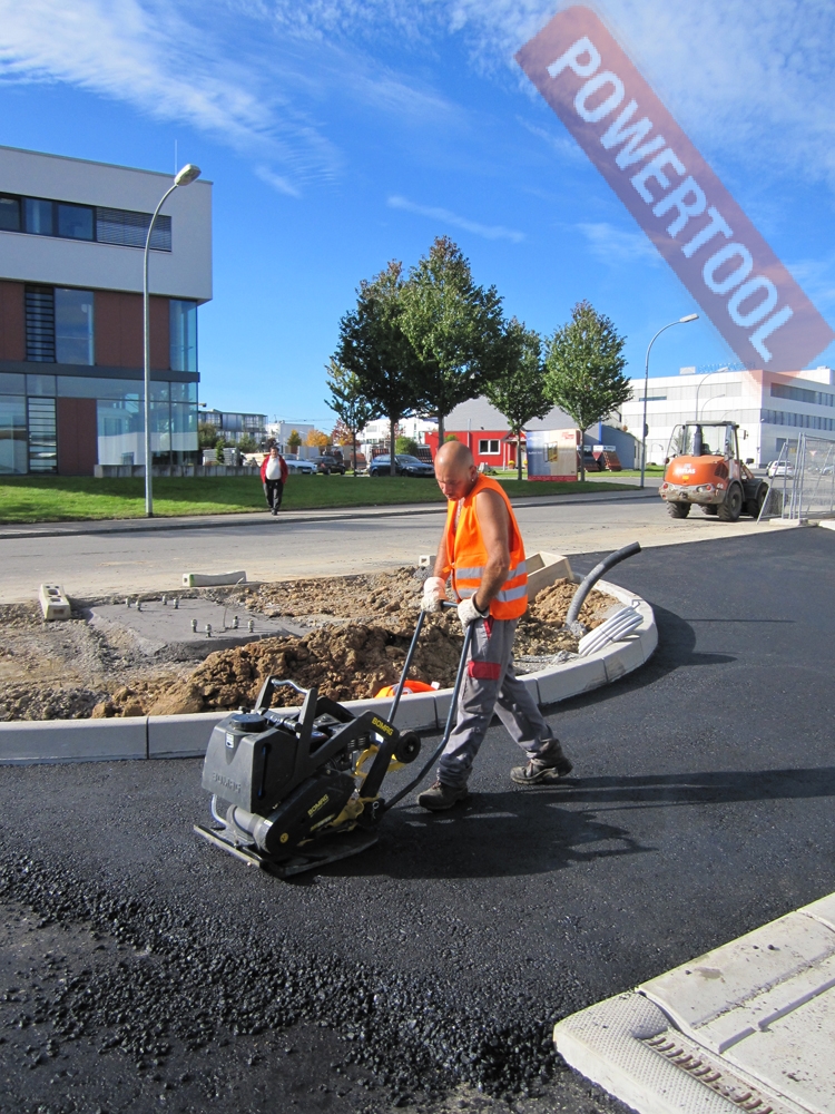 - Устойчивое одноточечное подвесное устройство обеспечивает безопасную транспортировку, а также комфорт управления при утрамбовывании краевых зон и стыков.