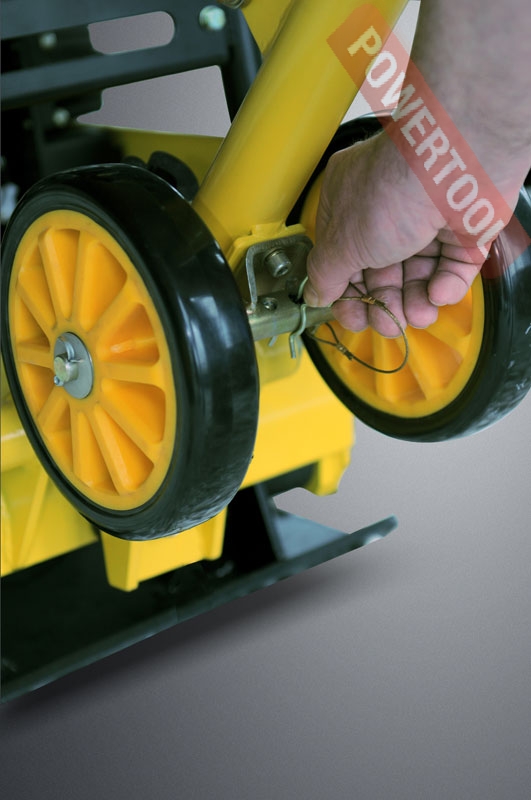 - Транспортировочные колеса позволяют легко перемещать виброплиту по объекту. При работе они убираются в специальную нишу.