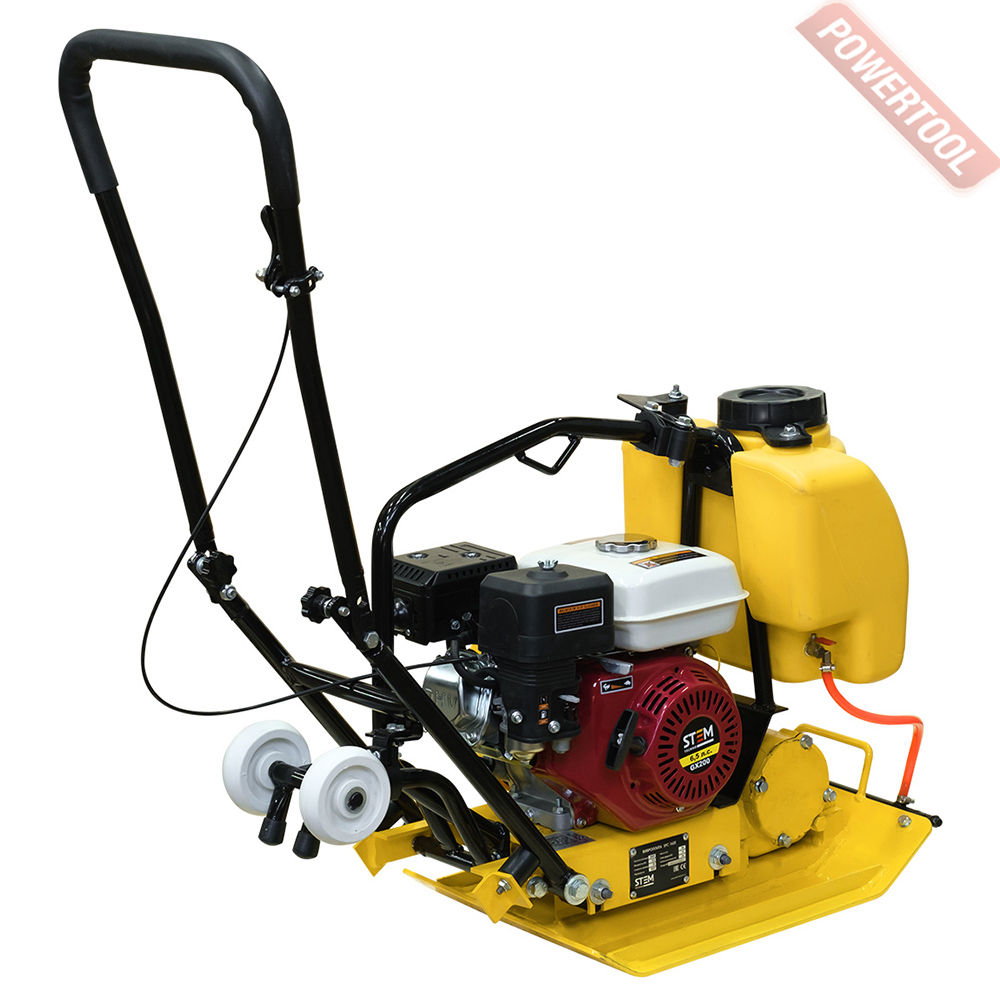 Виброплита поступательная бензиновая STEM Techno SPC 162E - одна популярных моделей, оборудована баком для воды и его защитным креплением. Есть возможность использовать с резиновым ковриком при укладке тротуарной плитки.