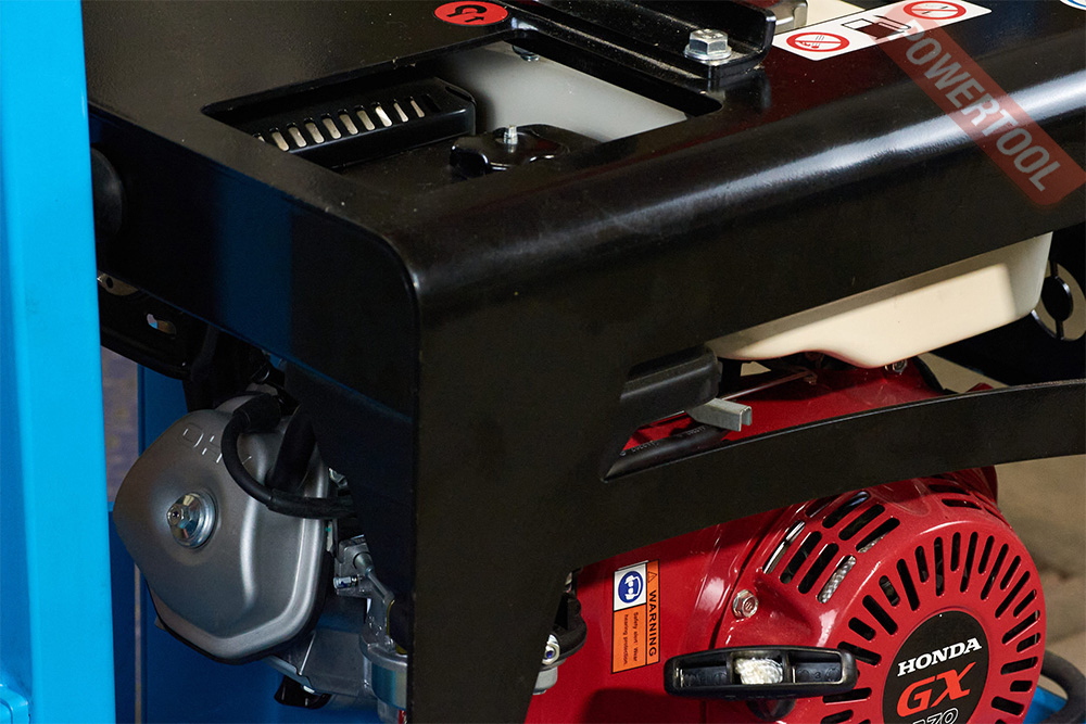 • Прочная стальная рама надёжно защищает двигатель от механических повреждений.