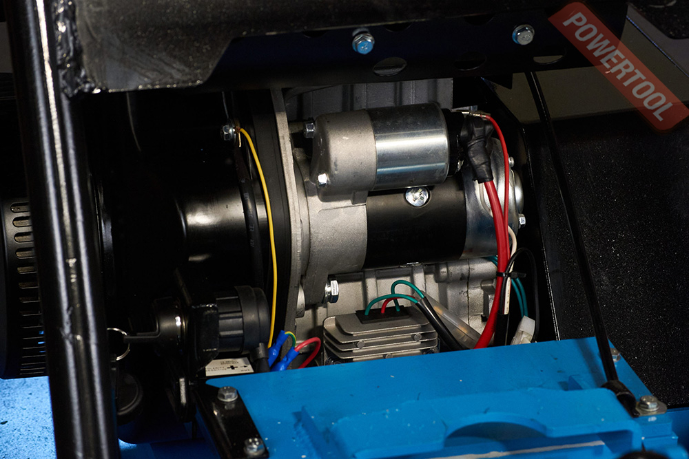 - Прочная стальная рама надёжно защищает двигатель от механических повреждений.