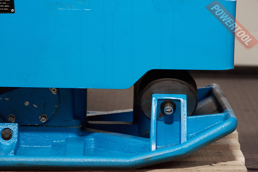 - Литая рабочая подошва плиты способна принимать повышенные нагрузки и эффективно передаёт вибрацию от эксцентрика.