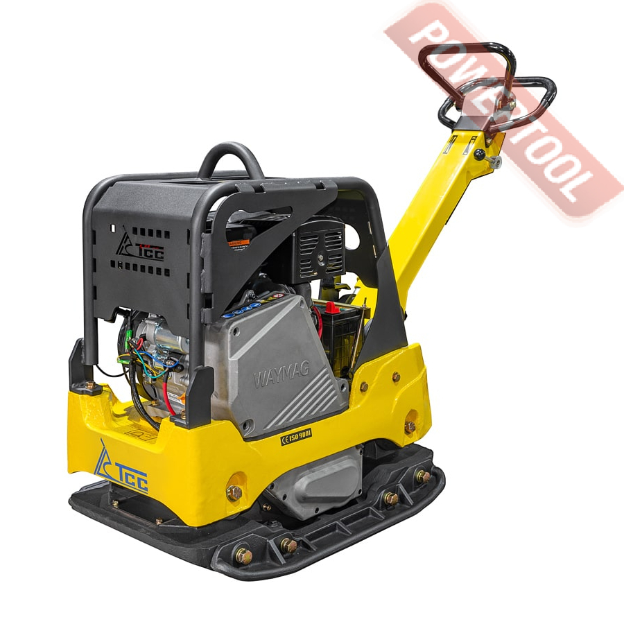 - Инновационная рукоять управления имеет эргономичную форму и полностью откидывается вперед, что с одной стороны очень удобно при транспортировке, а с другой стороны позволяет управлять плитой одной рукой и особенно удобна в поворотах. В месте соединения рукоятки с плитой стоят дополнительные амортизаторы для снижения уровня вибрации дополнительные амортизаторы встроены в ручку управления с которой непосредственно контактирует оператор, т.е. виброзащита носит двойной характер. Безопасная транспортировка обеспечивается безлюфтовым механизмом блокировки направляющей рукояти.