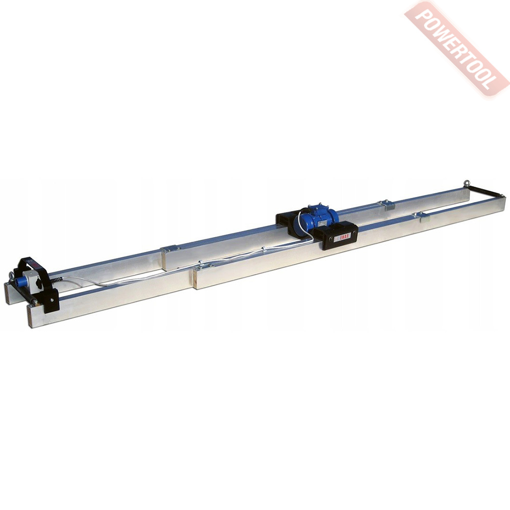 Телескопическая виброрейка для бетона с электрическим приводом ENAR QPM предназначена для уплотнения и выравнивания бетонных смесей при бетонировании дорог, полов, площадок в промышленном и гражданском строительстве. Колебания от дебалансира передаются на длинную плоскую рейку, соприкасающуюся раствором. Под ее воздействием из верхних слоев бетона удаляются излишки воздуха, а сама смесь уплотняется. Дополнительно выполняется разглаживание поверхности состава. Работает только по направляющим, имеет два параллельных прямоугольных профиля соединенных между собой перемычкой, на которой устанавливается вибропривод. К выравнивателю допускается крепить тяговые устройства с двух сторон.