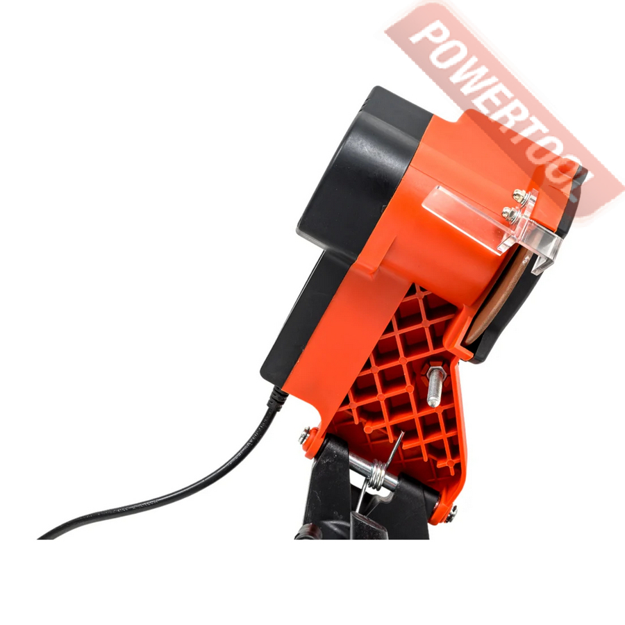 Заточной станок для цепей бензопил, мощность 85 Вт, напряжение 220 В, шлифкруг 105х22,2х3,2 мм, число оборотов 4800 об/мин, защитный экран, регулировка угла заточки, габариты ДхШхВ 260х185х180 мм, вес 2,15 кг, заточный диск 105х22,2х3,2 мм.