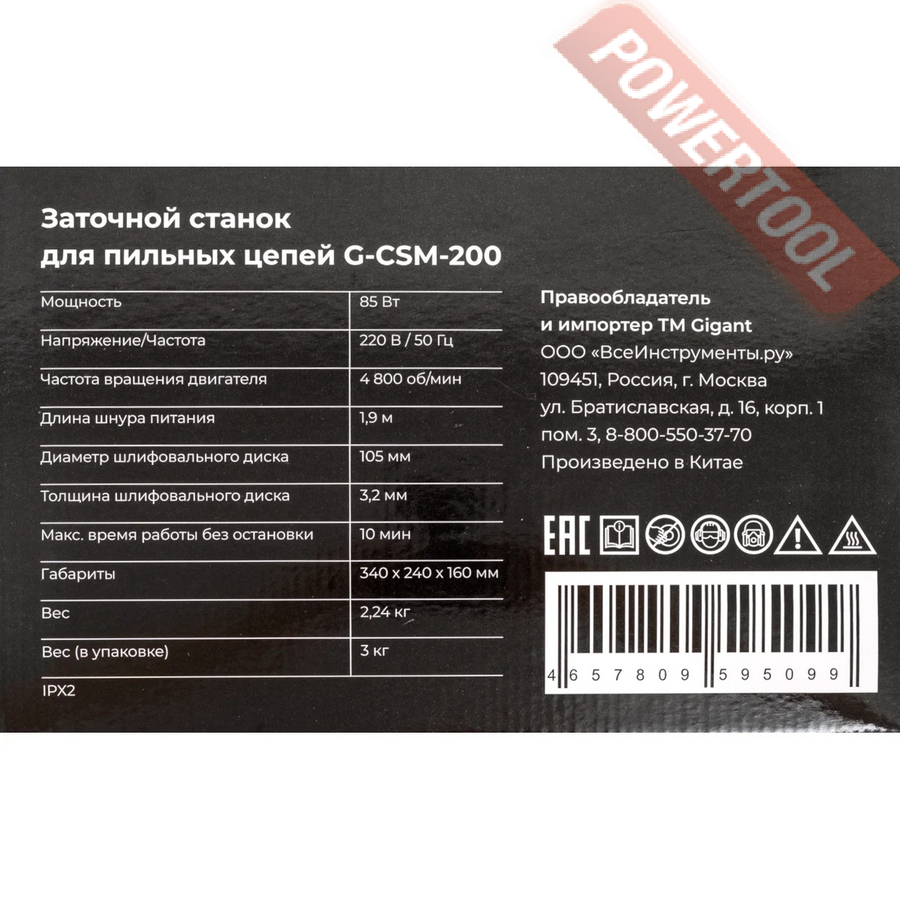 • 1. Заточной станок для цепей бензопил GIGANT G-CSM-200.