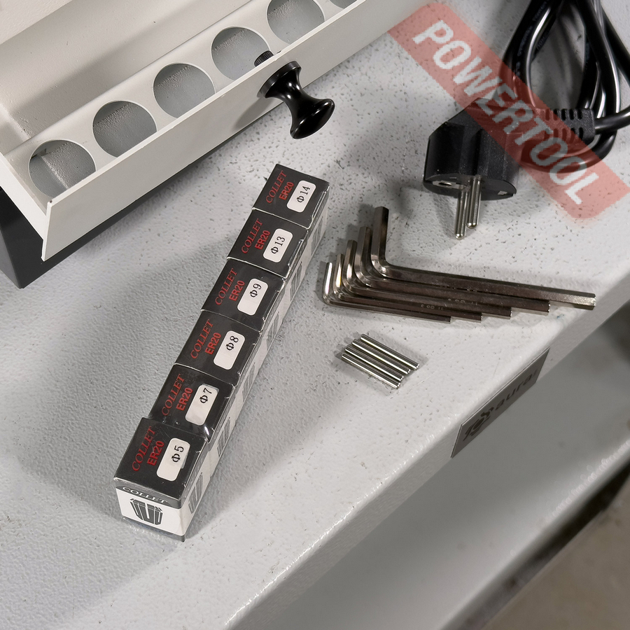 - 5. Комплект цанг (5, 7, 8, 9, 13 и 14 мм).