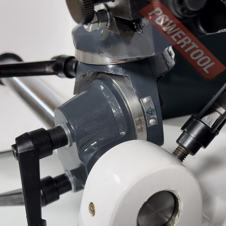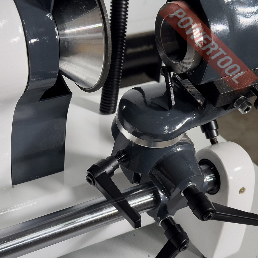 Широкий диапазон настроек положения делительной головки позволяет затачивать инструмент под любым необходимым углом. Головка имеет 24 положения фиксации, а так-же свободное вращение на 180 градусов или 360 градусов. Массивная конструкция корпуса станка, выполненная из чугуна, гарантирует его хорошую устойчивость. Высокая точность заточки инструмента обеспечивается прецизионным шлифовальным шпинделем и наличием микроподач заточного круга и цангового держателя. Для фиксации затачиваемого инструмента в делительном устройстве используются цанги DIN 6341, тип 385E (5C). В комплекте со станком поставляется 5 цанг 4, 6, 8, 10 и 12 мм. При приобретении дополнительного комплекта цанг арт. 700250128 появляется возможность затачивать режущий инструмент с цилиндрическим хвостовиком в диапазоне от 1 до 28 мм.